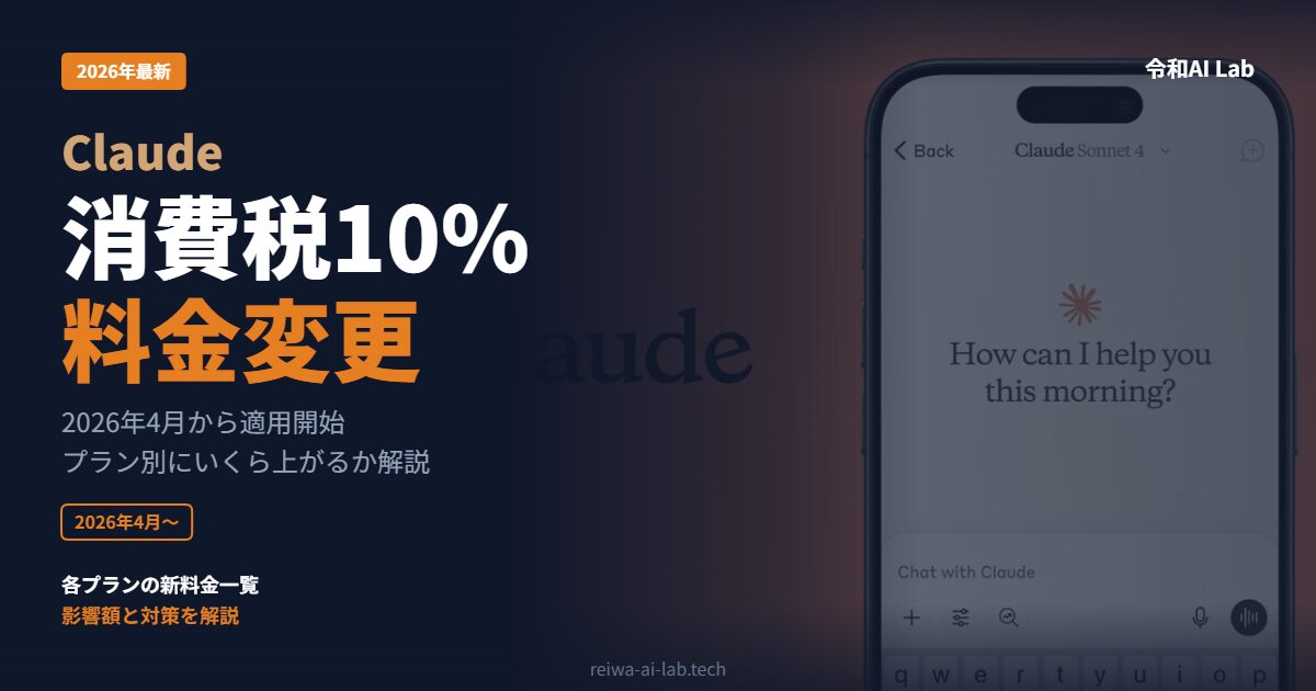 Anthropicが提供するAIアシスタント「Claude」の全サービスに、2026年4月1日から消費税10%が加算されることが発表されました。
