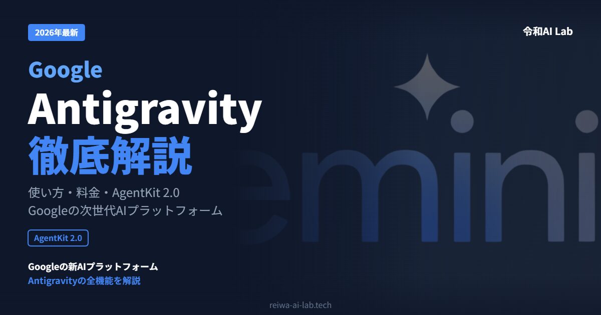 この記事では、Google Antigravityの基本的な使い方から、最新の料金プラン、AgentKit 2.0の新機能、そしてCursorやGitHub Copilotとの比較まで、まとめて解説していきます。
